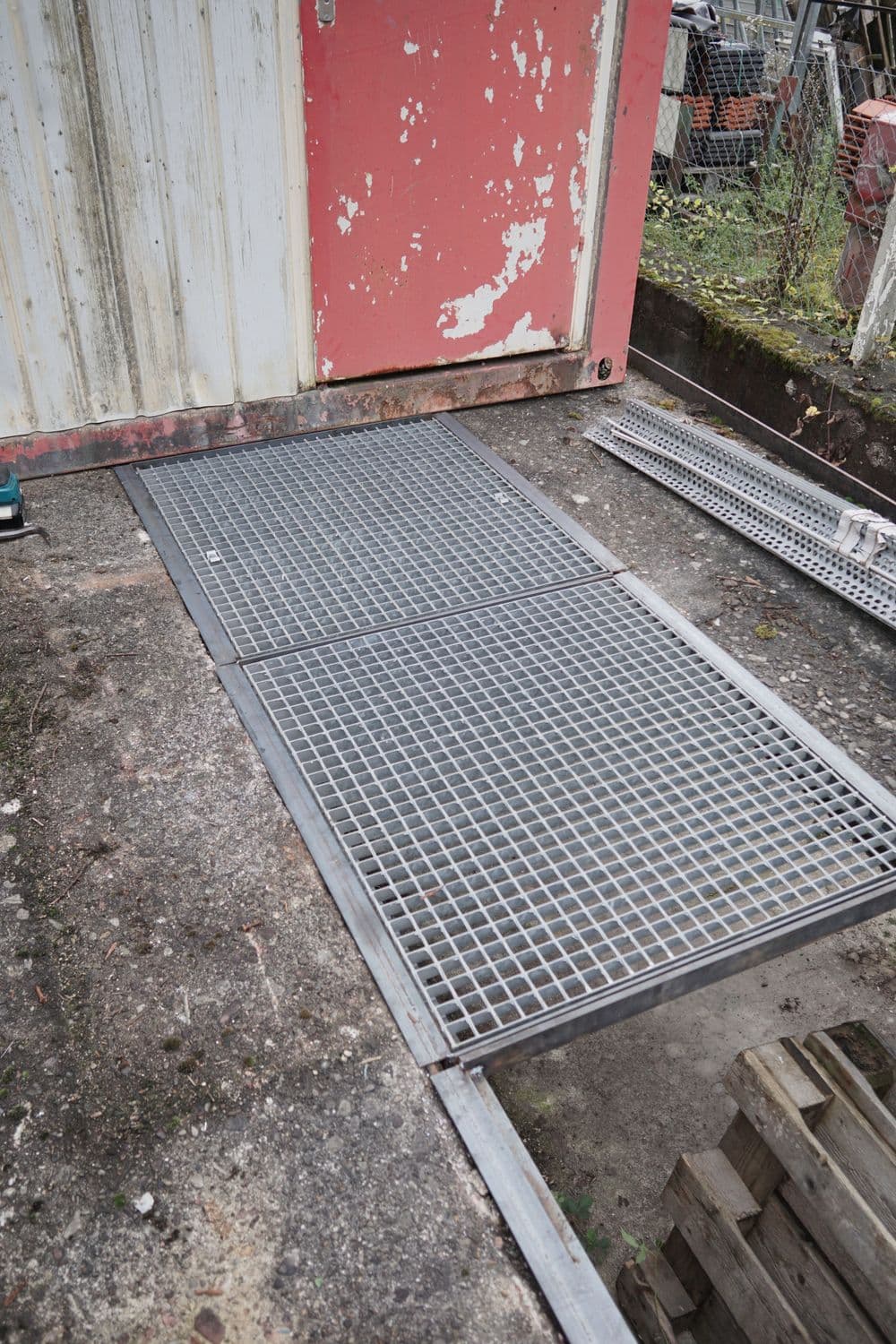 Außerdem haben wir auf der Busrampe vor dem nun dort befindlichen Container einen Boden aus Gitterrosten eingebaut, sodass man gefahrlos zum Container gelangen kann.