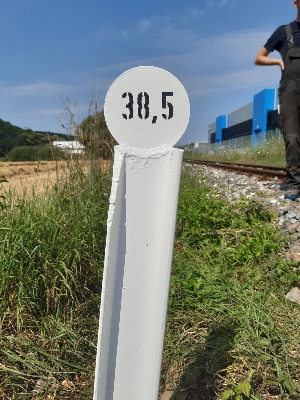 Das Kilometertäfelchen im Kilometer 38,5 hat seine neue Beschriftung erhalten.