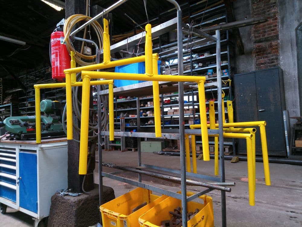 In der Werkstatt wurden die neuen Griffe für die Umsetzböcke geschweißt und lackiert.