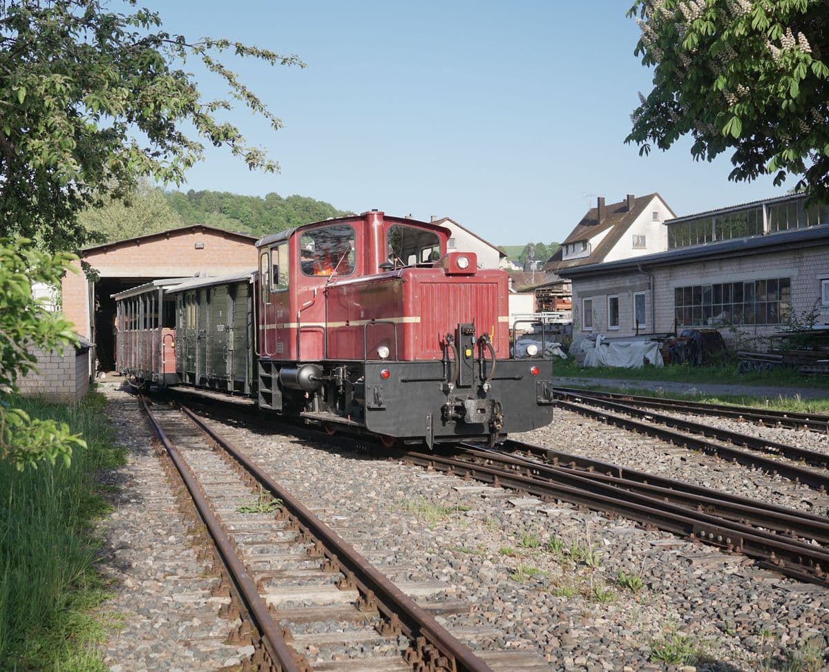 1988 wurde der Betrieb eingestellt - aber das wollen wir wieder ändern. Seit November 2021 fährt die Jagsttalbahn wieder! Zunächst nur innerhalb des Bahnhofs Dörzbach, seit 2024 aus dem Bahnhof hinaus auf dem ersten wiederhergestellten, ca. einen Kilometer langen Streckenabschnitt. Trotz der verhältnismäßig kurzen Strecke trägt der Fahrbetrieb maßgeblich dazu bei, dieses technische Denkmal zu erhalten und einem breiten Publikum zu präsentieren.