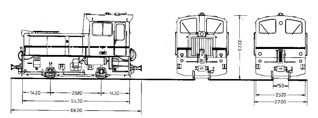 Der Rahmen der Loks besteht aus sehr massiven Blechplatten, in denen die Radsatzlager in Metall-Gummi-Elementen gelagert sind. Der Achsantrieb erfolgt über Gelenkwellen, die ausgehend vom 6-Zylinder-MAN-Dieselmotor (D 2146 HM) über einen Einfachwandler (VOITH RS 15 z) und ein Stufen- und Wendegetriebe angetrieben werden.