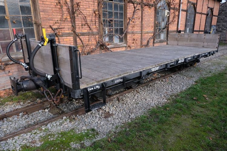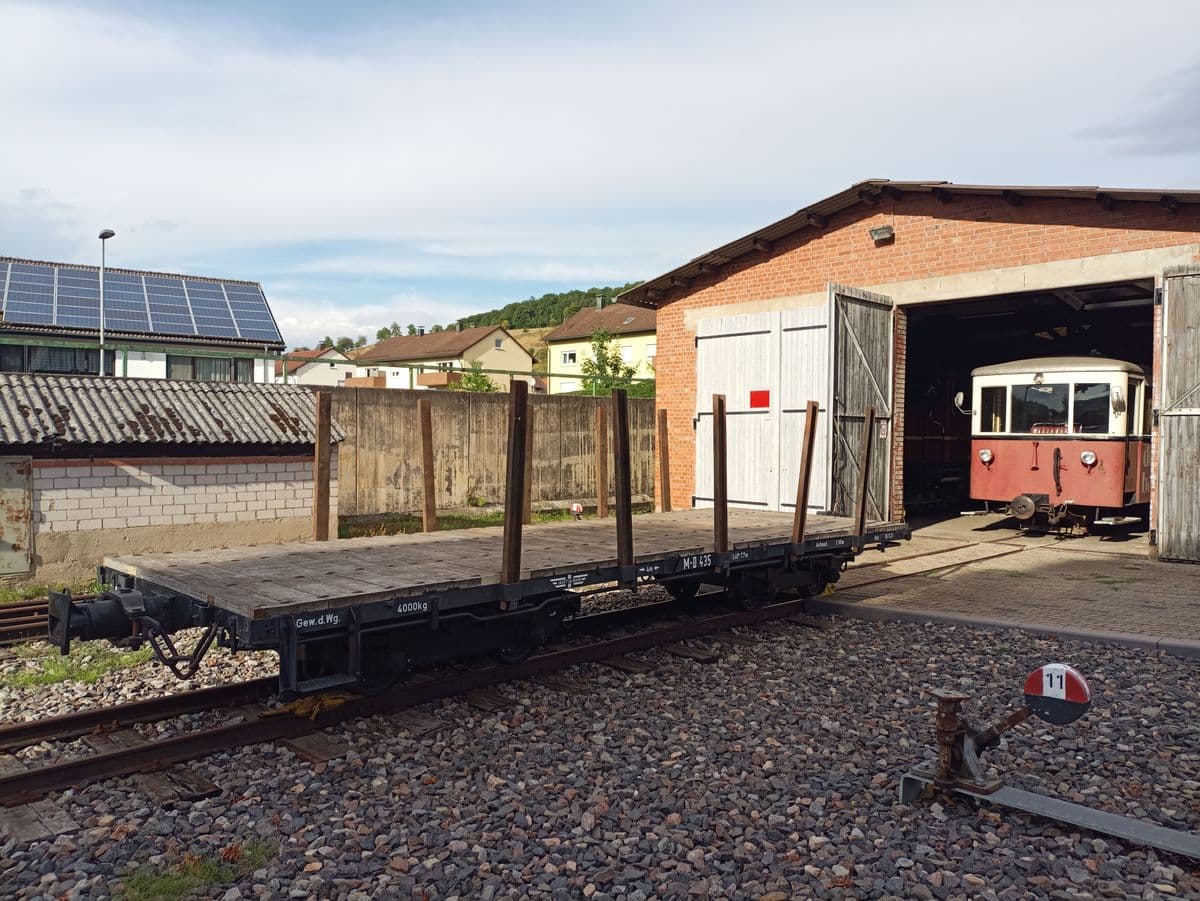 Im Sommer 2022 wird der Wagen für den Transport von Schienenprofilen vorbereitet. Dafür wurden die Stirnwände entfernt und seitliche Rungen eingesetzt. Dank der Konstruktion als Heeresfeldbahnwagen waren diese Arbeiten zu zweit in wenigen Stunden erledigt.