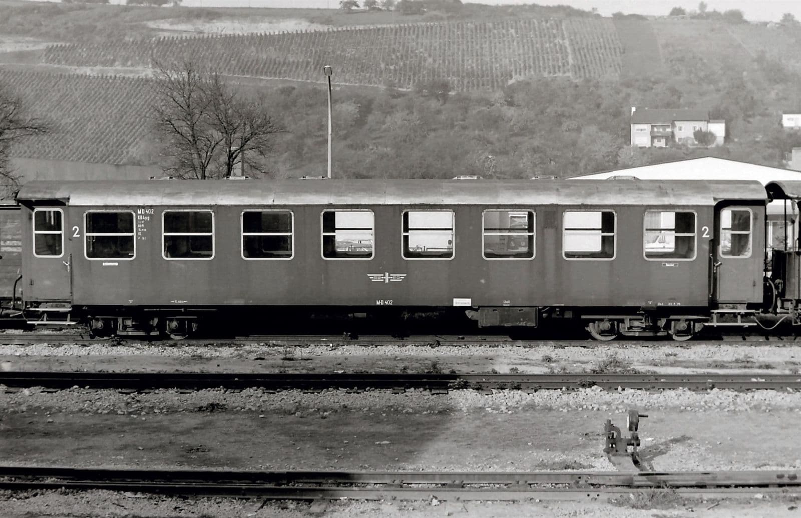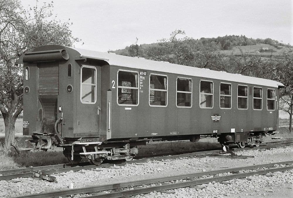 Mit dem Wagen M-D 402 befindet sich ein außergewöhnliches und zugleich einzigartiges Fahrzeug in unserer Sammlung. Er ist der letzte von der Bundesbahn angeschaffte Personenwagen mit einer Spurweite von 750 mm. Er ist außerdem mit Baujahr 1961 unser jüngster Wagen.