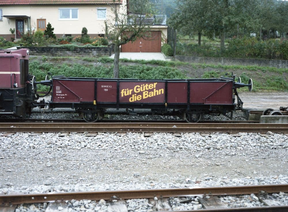 M-D 159 vor der Rollbockgrube in Bieringen, zu einer Zeit als noch beeindruckende Mengen Güter im Jagsttal auf der Schiene bewegt wurden.