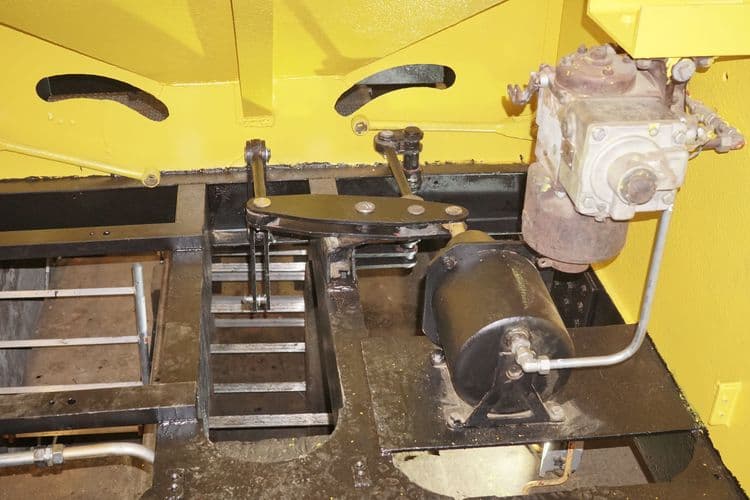 Als eine der letzten größeren Arbeiten stand der Wiedereinbau des Schotterkorbs auf dem Programm. Nach wenigen Reparaturen am Schotterkorb selbst wurde dieser wieder unter den Wagen geschoben und dort mit den Seilen der Hubeinrichtung verbunden. Zudem wurden die Dorne, die den Korb beim Anheben in eine definierte Position führen, angebracht.Nach den ersten Tests mussten noch die Spanneinrichtung für die Seile und die Ketten, die den Schotterkorb im abgesenkten Zustand ziehen, bearbeitet werden.